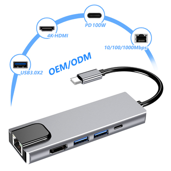फैक्टरी 5 पोर्ट प्रकार c हब hdTV 4k pd100w USB-C डॉकिंग स्टेशन usb लैपटॉप के लिए 3.0 स्प्लिटर
